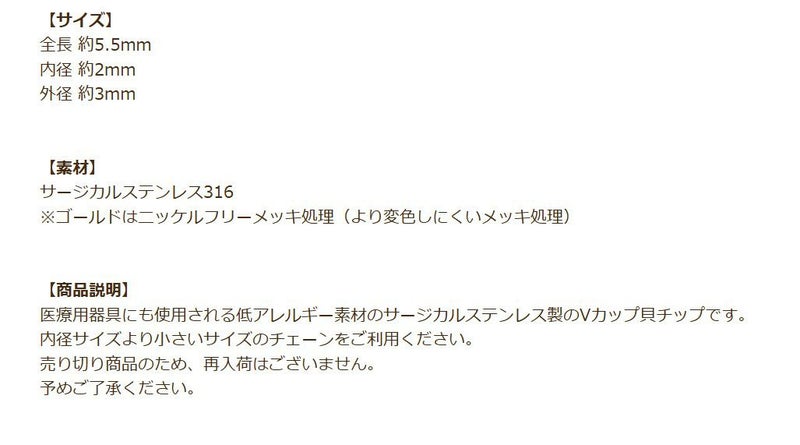 医療用器具にも使用される低アレルギー素材のサージカルステンレス製のVカップ貝チップです。