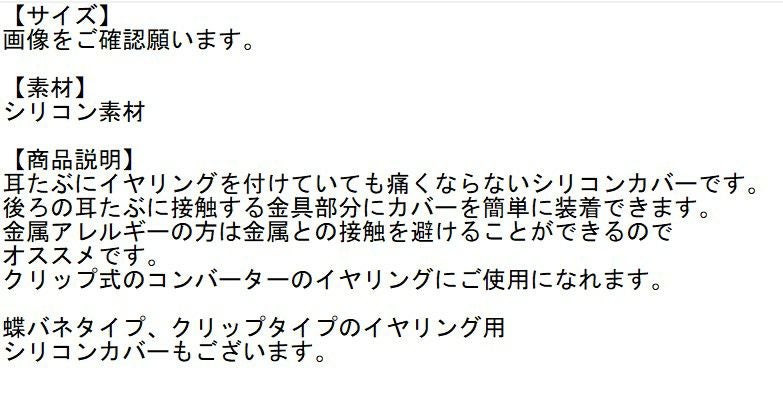 商品説明 下長時間イヤリングを付けていても痛くならないシリコンカバーです。