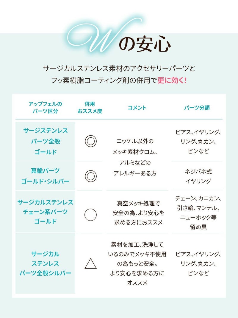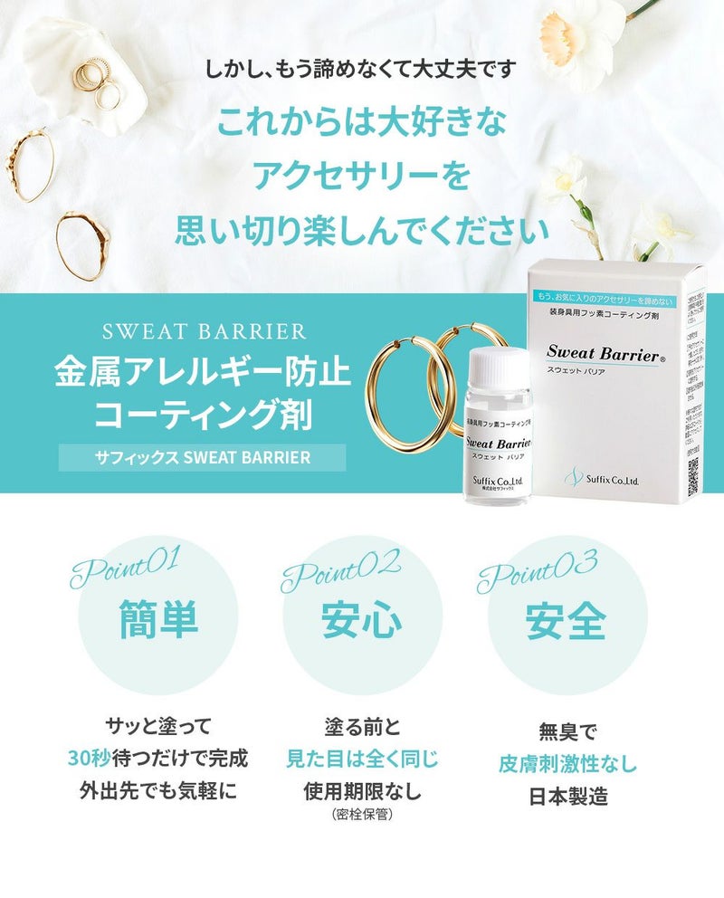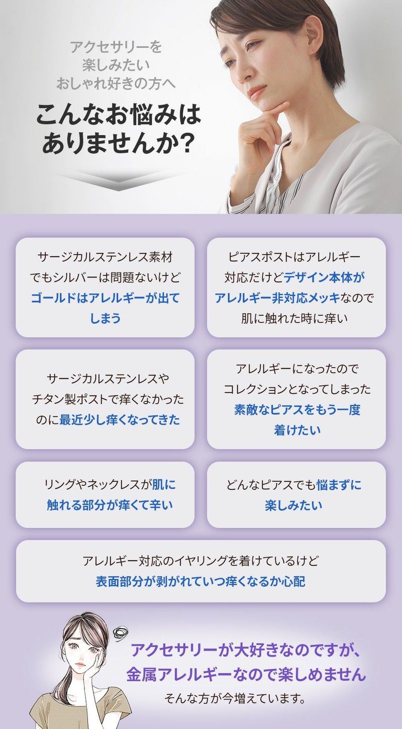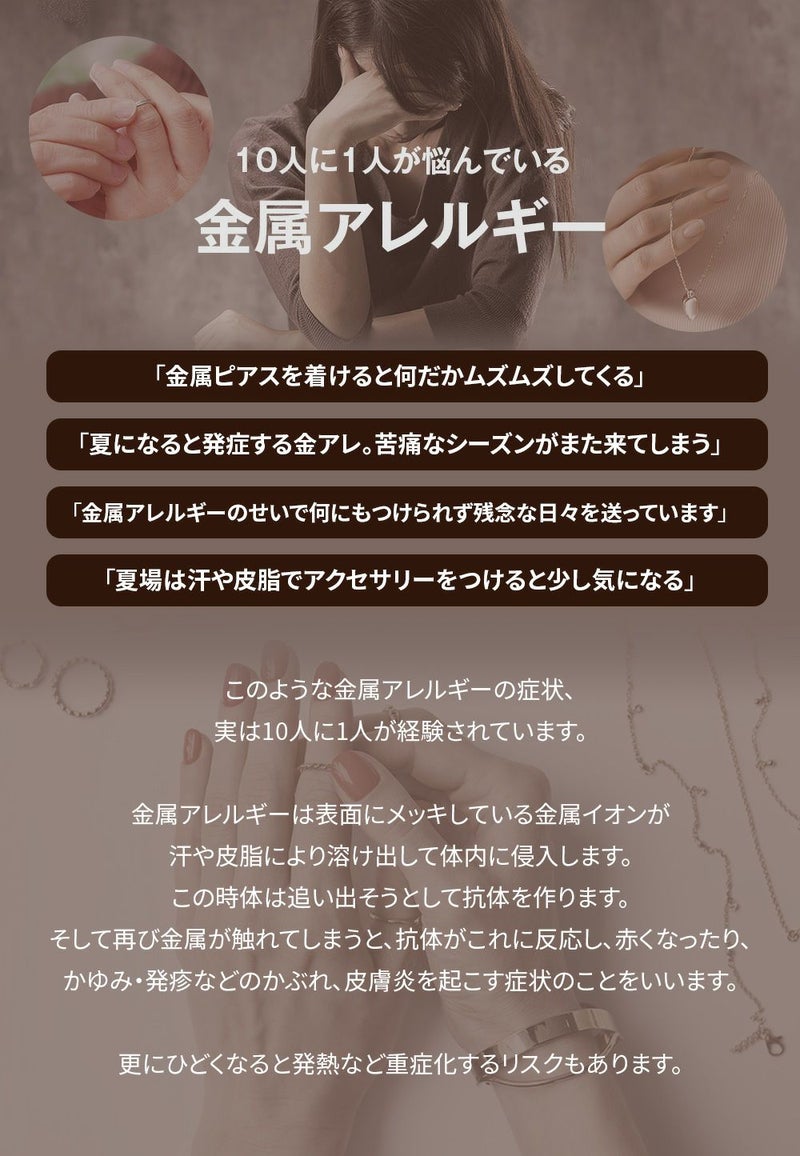 金属アレルギーのお肌を守ります