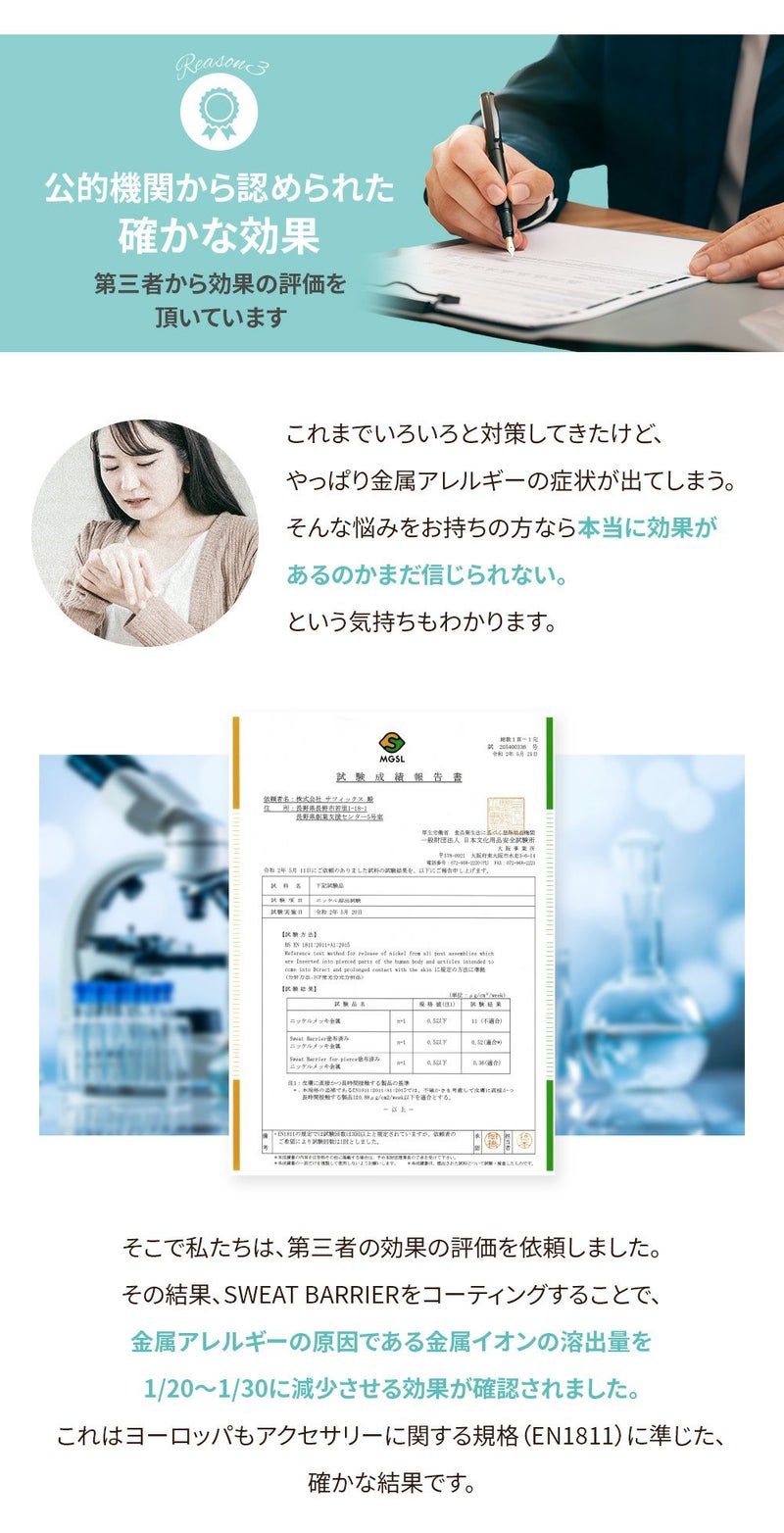 そしてもちろん、金属アレルギーだけでなく、人体への安全の考慮もバッチリです。
