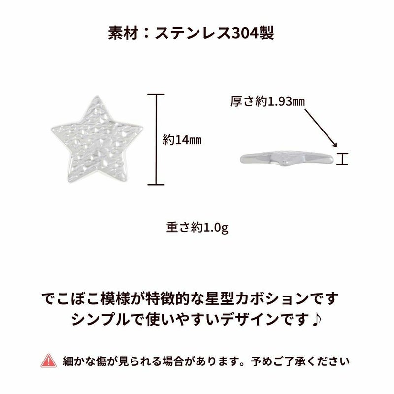 [4個] 304 カボション K1005 でこぼこスター *小* [ 銀 シルバー ] ステンレス パーツ 貼付 セッティング 星 宇宙 金属アレルギー対応 O-03