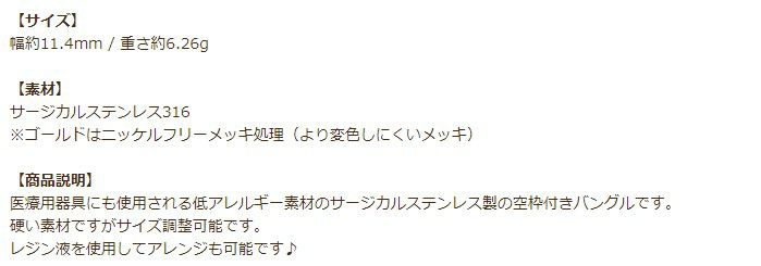 医療用器具にも使用される低アレルギー素材のサージカルステンレス製の空枠付きバングルです。