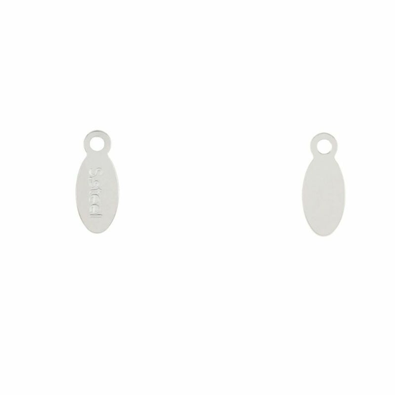[5個] 316 タグ プレート カン付き 楕円 10mm 刻印 [ 銀 シルバー ] サージカルステンレス ネックレス パーツ 金属アレルギー 対応 M1-03