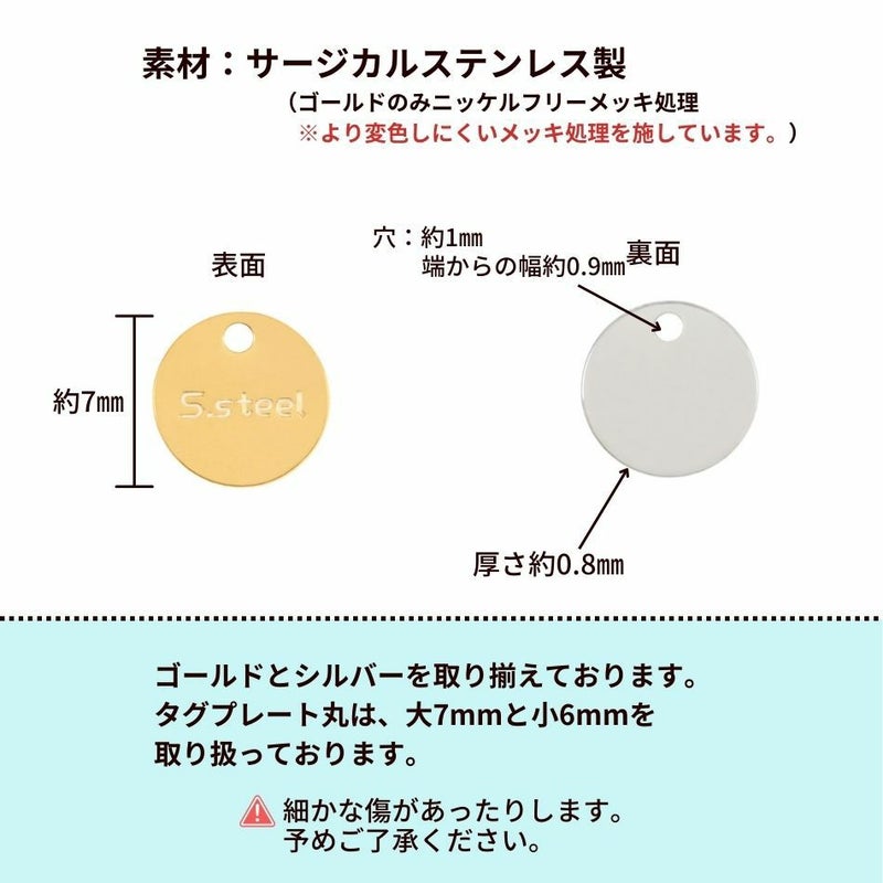 [5個] 316 タグ プレート 丸 7mm 大 刻印 [ ゴールド 金 ] サージカルステンレス ネックレス パーツ 金属アレルギー 対応 M1-03