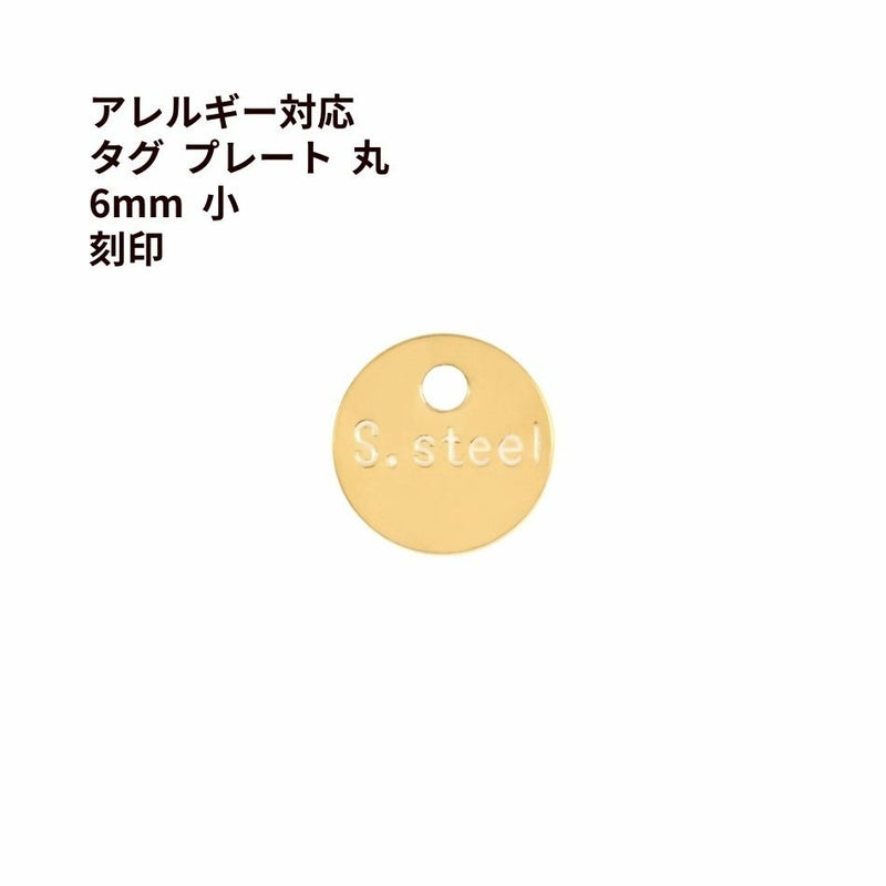 [5個] 316 タグ プレート 丸 6mm 小 刻印 [ ゴールド 金 ] サージカルステンレス ネックレス パーツ 金属アレルギー 対応 M1-03