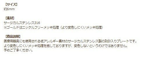 医療用器具にも使用される低アレルギー素材のサージカルステンレス製の刻印入りプレートです。