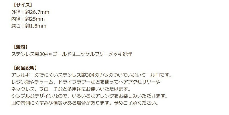 [10個] ステンレス カン無し * ミール皿 * 25mm [ ゴールド 金 ] パーツ レジン 金属 アレルギー 対応 M2-05