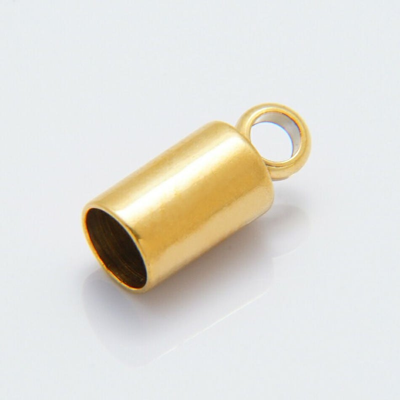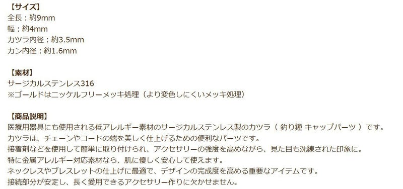 [ 20個 ] カン付き * カツラ * 中 3.5mm [ ゴールド 金 ] サージカルステンレス 紐留め 革紐 キャップ エンドパーツ 金属アレルギー対応 M1-05