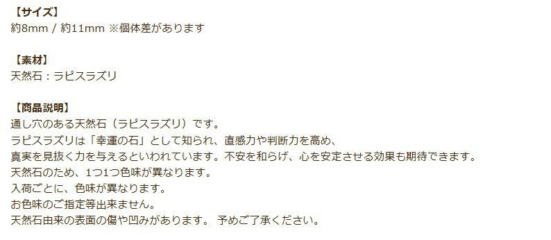 [ 1個 ] ラピスラズリ 天然石 粒売り ビーズ 選べるサイズ 約8mm 約11mm 瑠璃 魔除け 厄除け アフガニスタン産 O-05