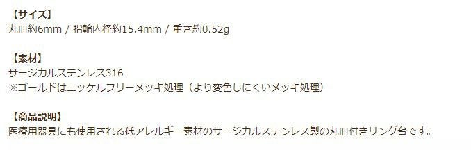 金アレ 316 素材 材料 ニッケルフリー 敏感肌 指輪 リング台