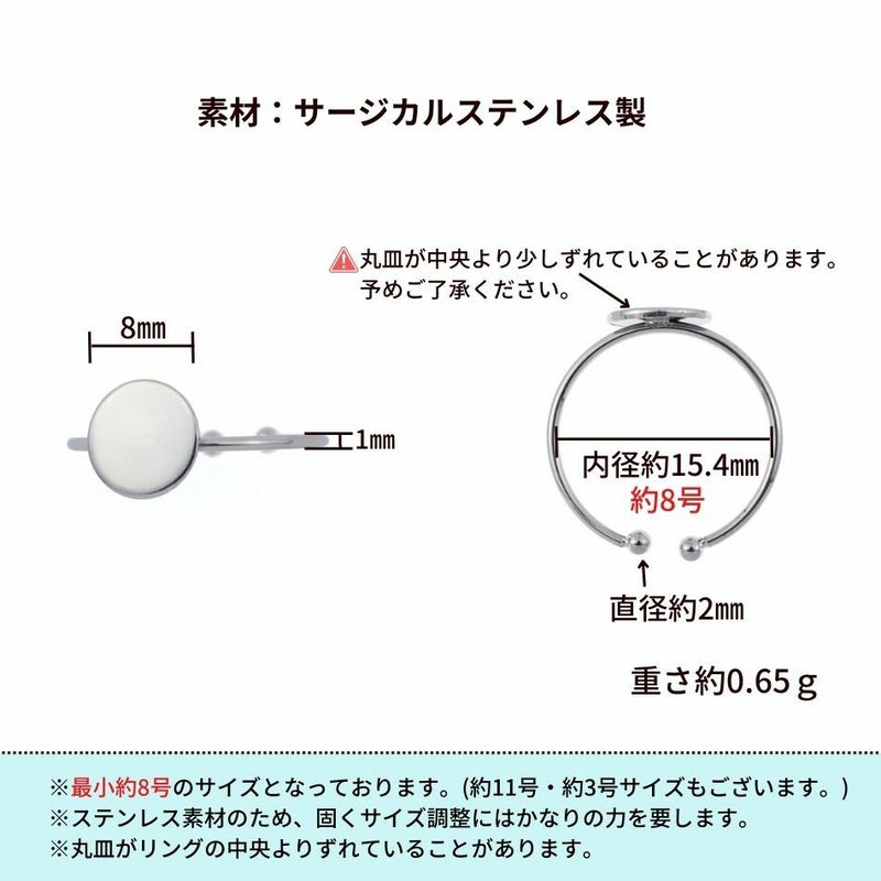 [ 5個 ]316 指輪 リング台 C ※ 約8号 中サイズ ※ 丸皿 8mm [ 銀 シルバー ] サージカルステンレス 台座 パーツ 金属アレルギー対応 O-02