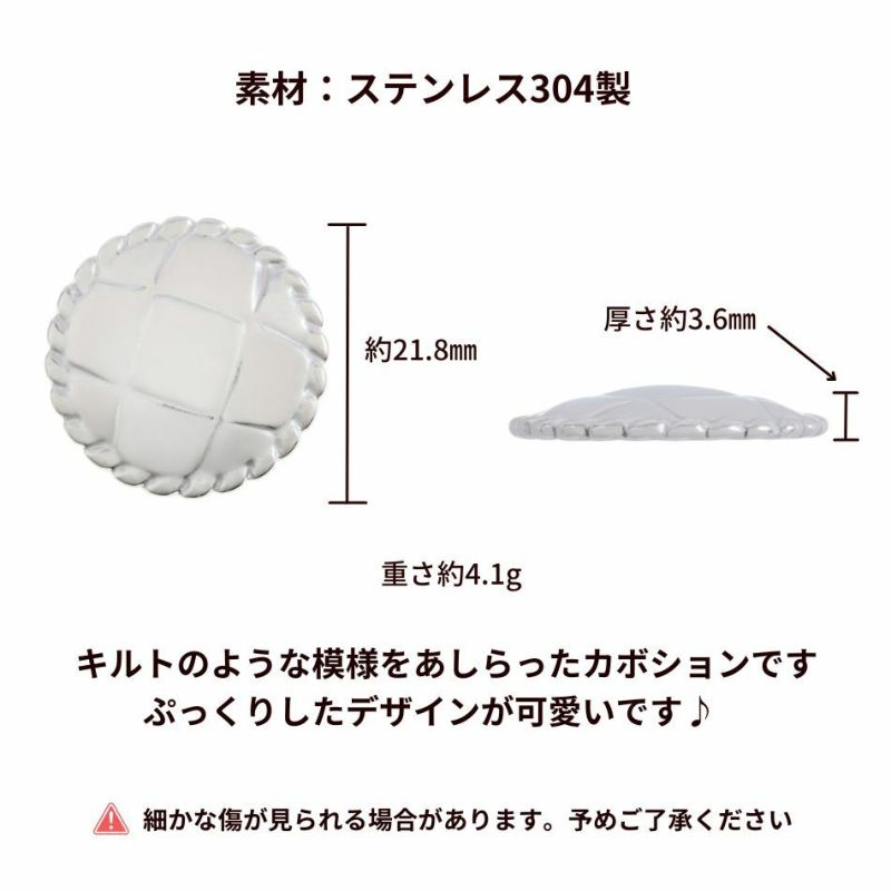 [4個] 304 カボション K1000 キルトラウンド *大* [ 銀 シルバー ] ステンレス パーツ 貼付 セッティング 丸 金属アレルギー対応 O-03