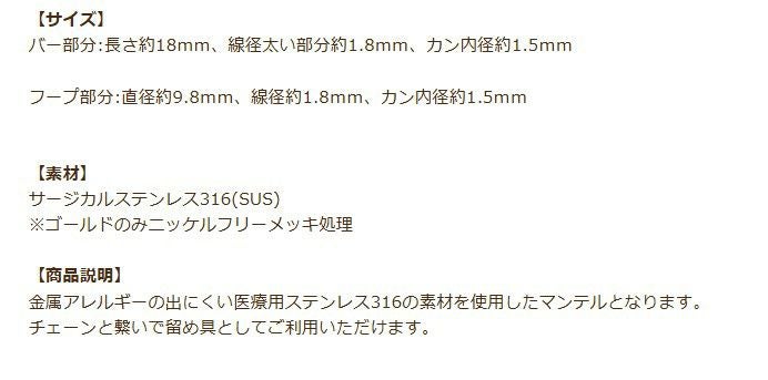 金属アレルギー マンテル 素材 留め具 316 金色 素材 金具