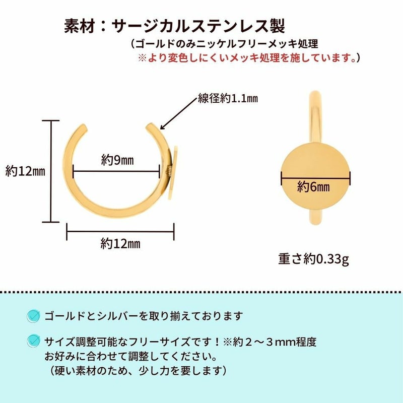 *丸皿* イヤーカフ [ ゴールド 金 ] サージカルステンレス 平皿 貼付 フリーサイズ 素材 パーツ 金属アレルギー対応 E1-03
