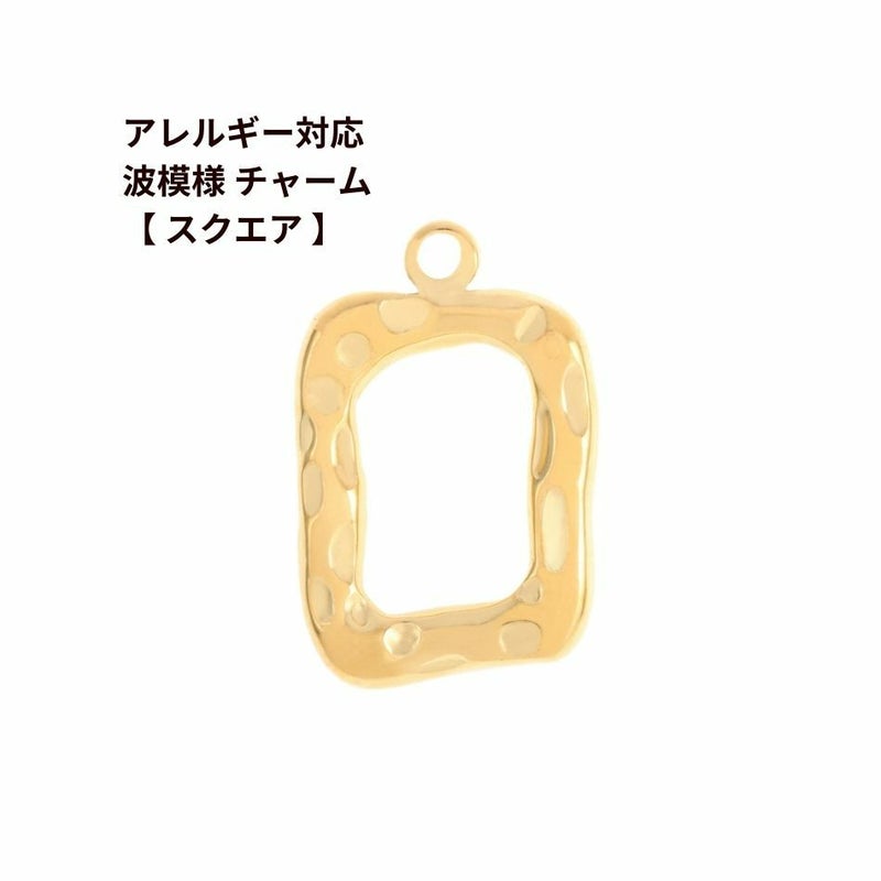 [ 1個 ] 316 カン付き 波模様 チャーム 【 スクエア 】 [ ゴールド 金 ] サージカルステンレス パーツ 素材 金属アレルギー対応 O-05