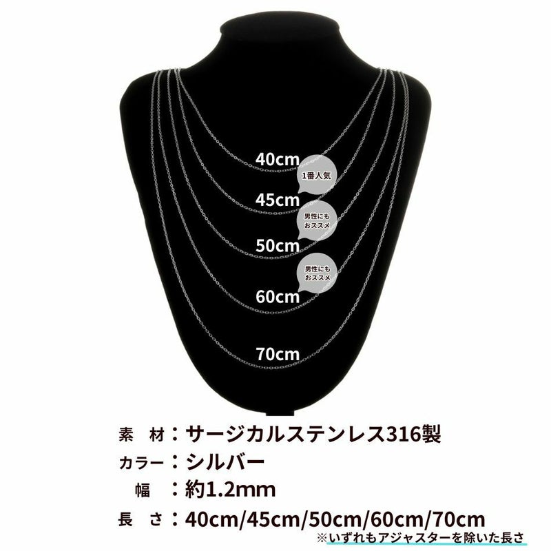 金属アレルギーになりにくい、反応しにくいサージカルステンレス316素材を使用した小豆チェーンのネックレスとなります。