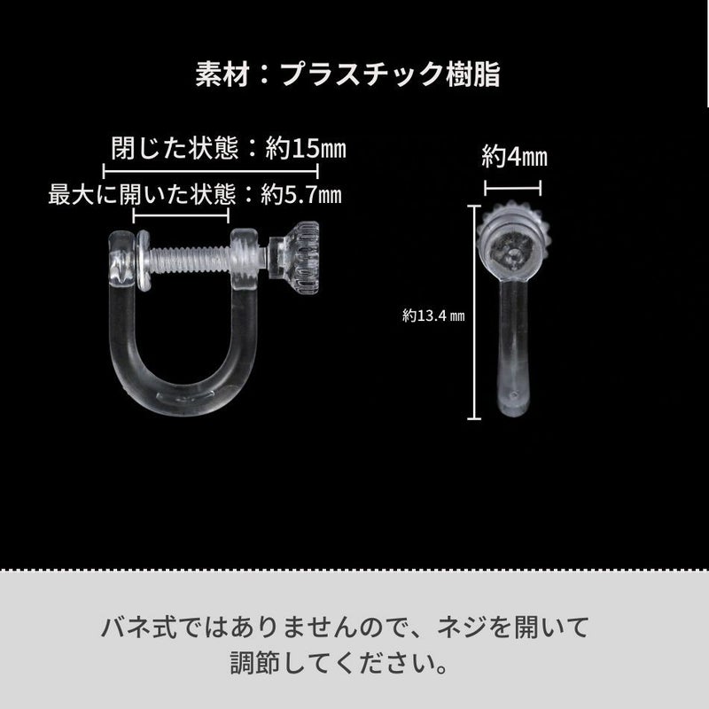 透明でクリアな樹脂素材のネジ式イヤリングです。