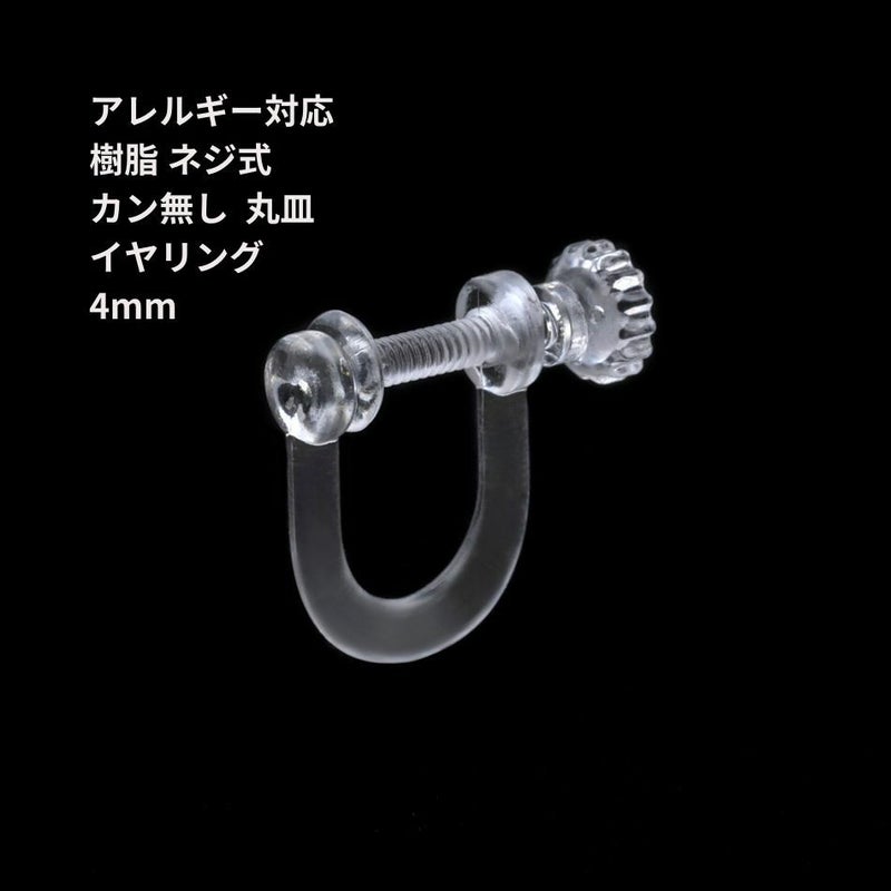 [20個]* 樹脂 * ネジ式 カン無し 丸皿 4㎜ イヤリング [ クリア ] プラスチック パーツ 金属アレルギー対応 E1-06