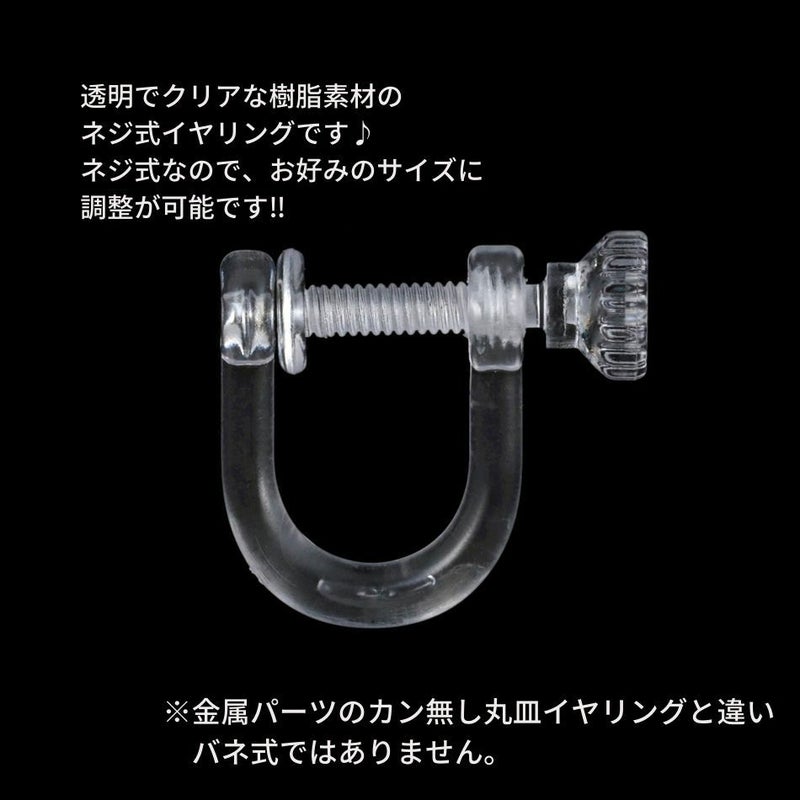 透明でクリアな樹脂素材のネジ式イヤリングです。
