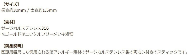 [4個] 316 両カン スティック 《 30mm 》 [ ゴールド 金 ] サージカルステンレス パーツ 金属アレルギー対応 O-05