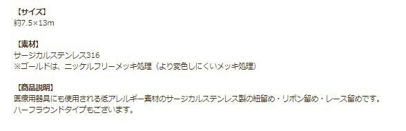医療用器具にも使用される低アレルギー素材のサージカルステンレス製の紐留め・リボン留め・レース留めです。