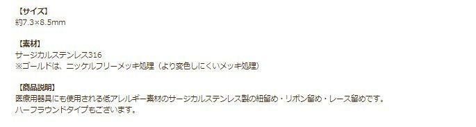 医療用器具にも使用される低アレルギー素材のサージカルステンレス製の紐留め・リボン留め・レース留めです。