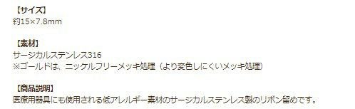 医療用器具にも使用される低アレルギー素材のサージカルステンレス製のリボン留めです。