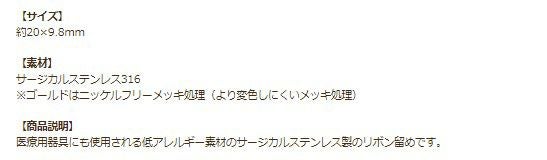医療用器具にも使用される低アレルギー素材のサージカルステンレス製のリボン留めです。