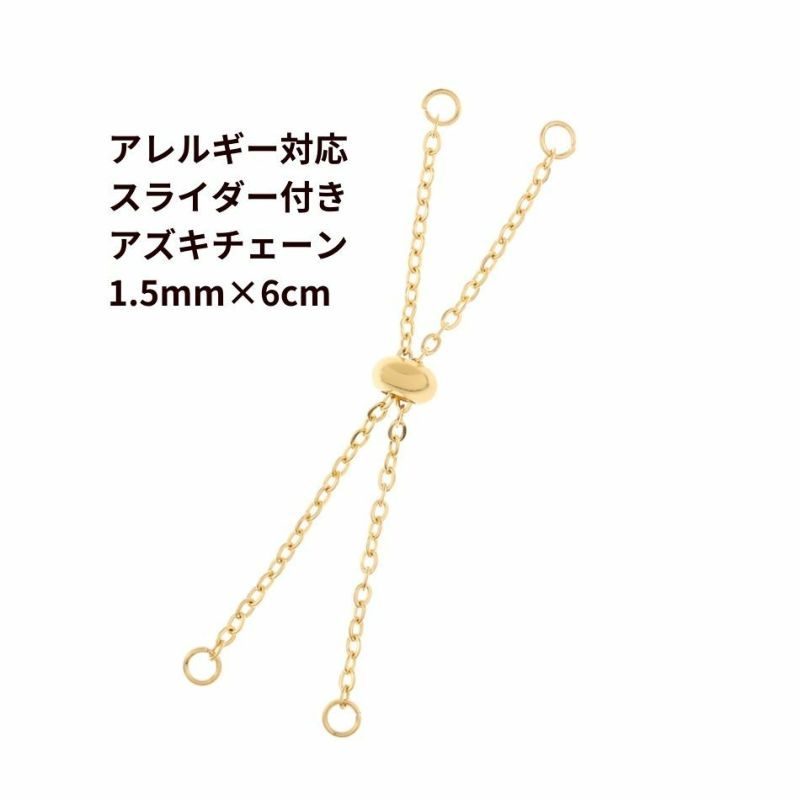 [2個] スライダー付き アズキチェーン 1.5mm×6cm[ ゴールド 金 ] サージカルステンレス ブレスレット スライドチェーン 金属アレルギー 対応 C1-01