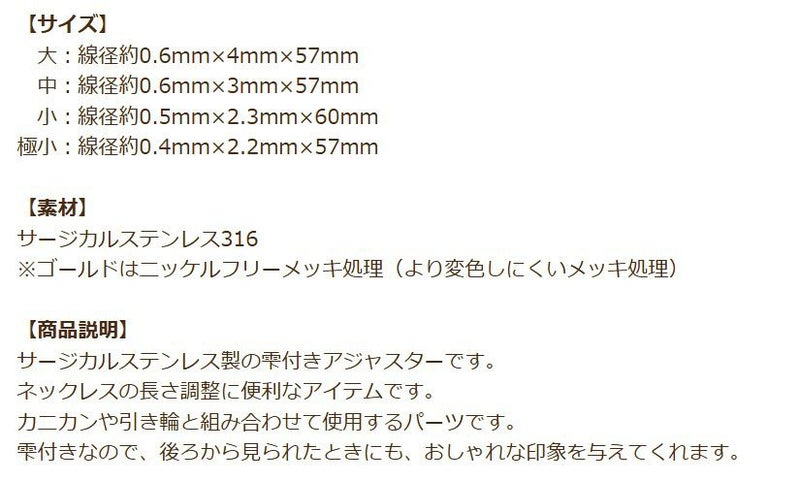 [5個]サージカルステンレス雫付きアジャスターチェーン極小【単品】[銀シルバー]金具ネックレスアンクレットパーツアレルギー対応