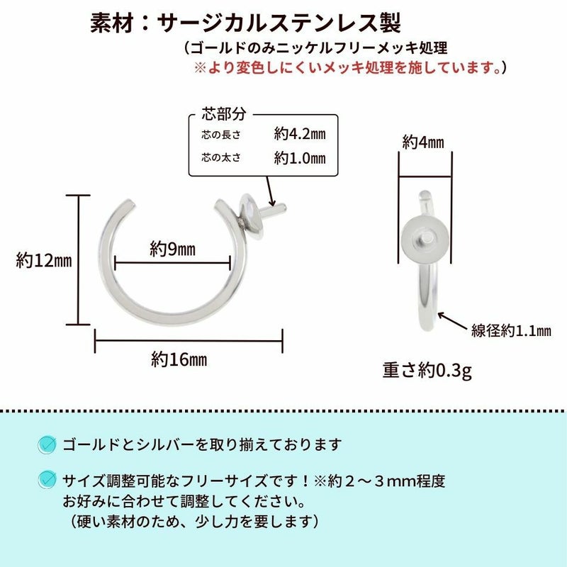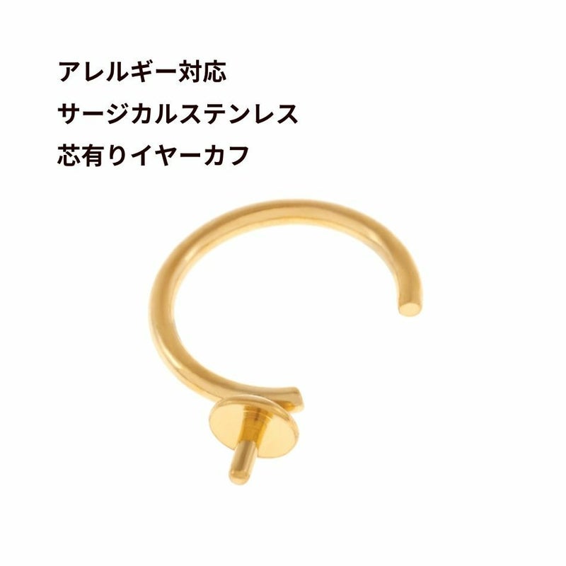 *芯有り* イヤーカフ [ ゴールド 金 ] サージカルステンレス 芯立て ビーズ フリーサイズ 素材 パーツ 金属アレルギー対応 E1-03