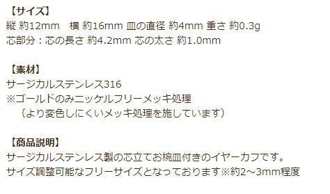 サージカルステンレス製の芯立てお椀皿付きのイヤーカフです。