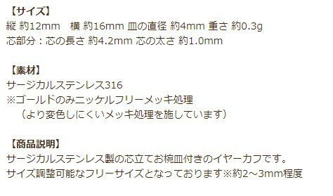 サージカルステンレス製の芯立てお椀皿付きのイヤーカフです。