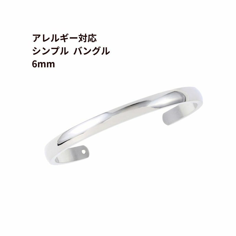 [1個] シンプル バングル * 6mm * [ 銀 シルバー ] サージカルステンレス パーツ 金属アレルギー対応 O-05