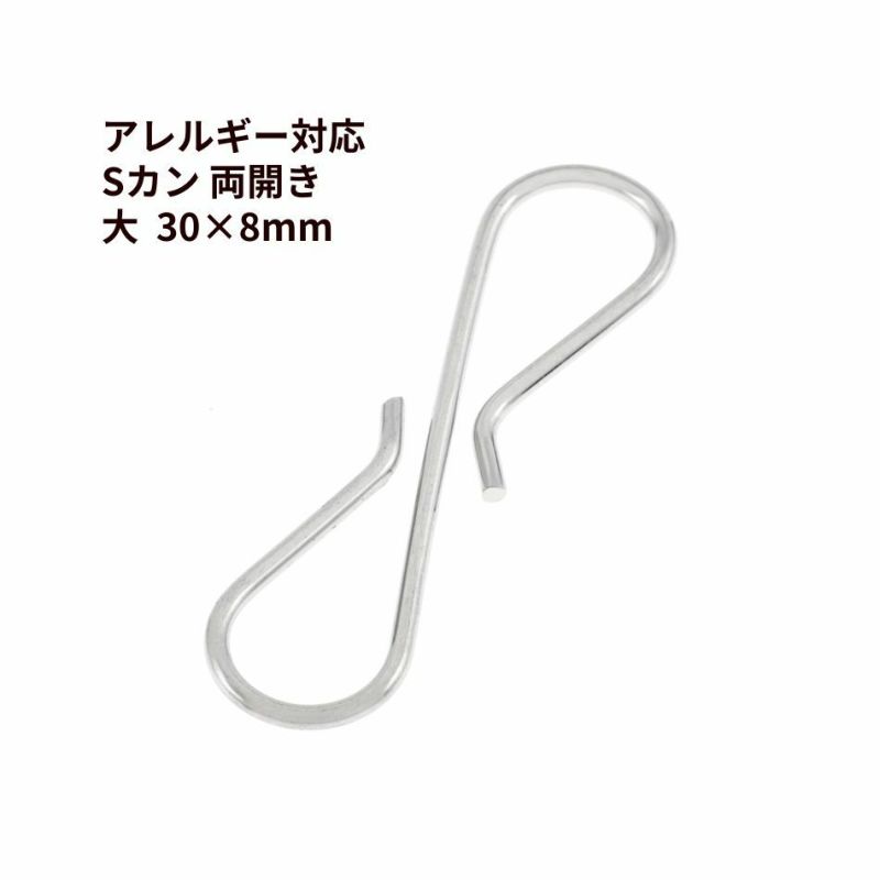 316 Sカン 両開き 大 ( 30 × 8mm ) [ 銀 シルバー ] サージカルステンレス S字フック パーツ 金属アレルギー対応 CA-07