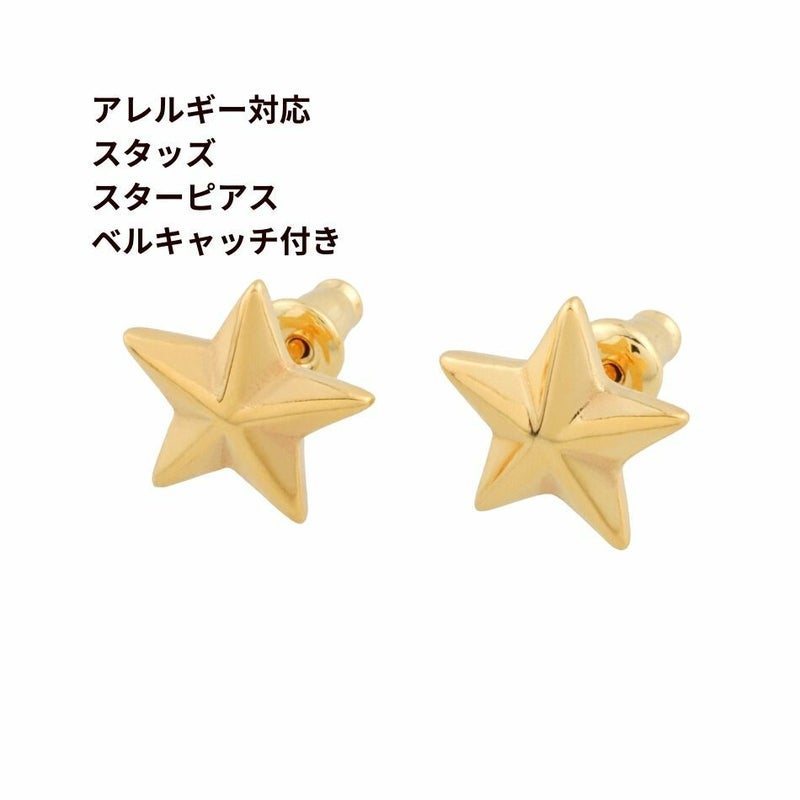 [ 2個 ] サージカルステンレス * スタッズ * スターピアス ベルキャッチ付き [ ゴールド 金 ] ベルキャッチ付き パーツ 金属アレルギー対応 P1-05