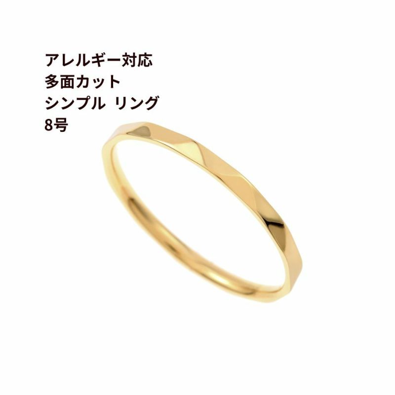 [ 5個 ]サージカルステンレス 多面カット シンプル リング ※8号サイズ※ [ ゴールド 金 ] 指輪 台座 パーツ 金属アレルギー対応 O-02