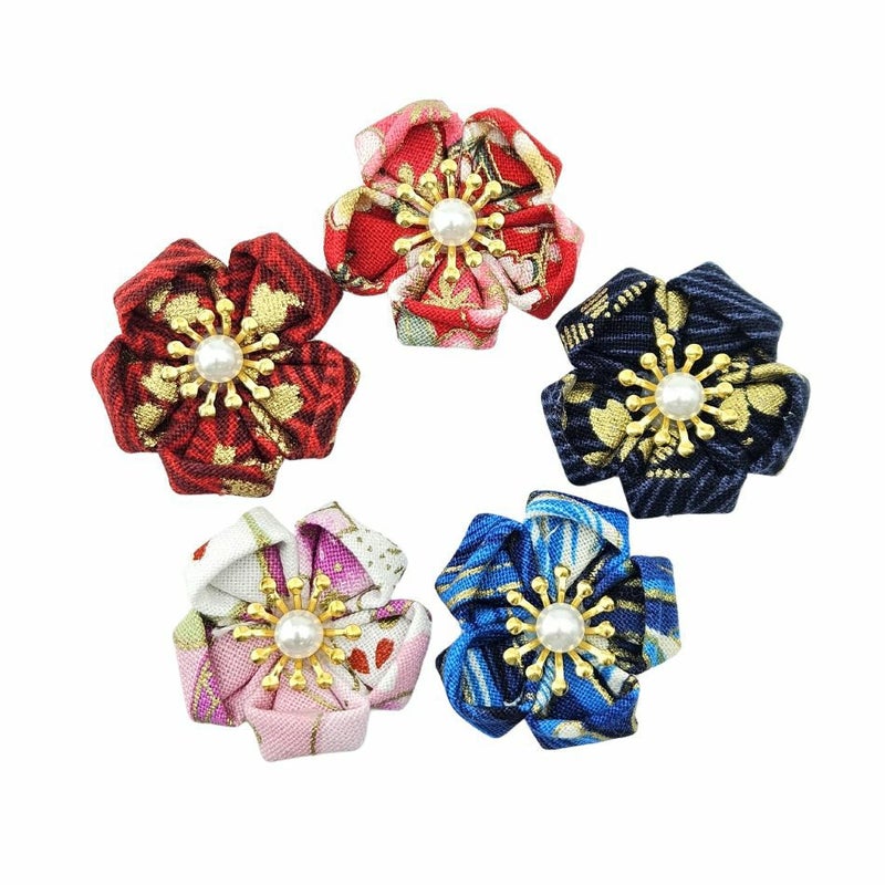 [ 1個 ] ちりめん細工 和柄 花 パーツ 赤 紅 青 紺 桃 カボション アクセサリー パーツ O-03
