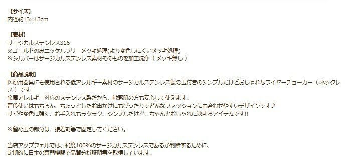 金アレ 316 素材 材料 ニッケルフリー ワイヤー チョーカー
