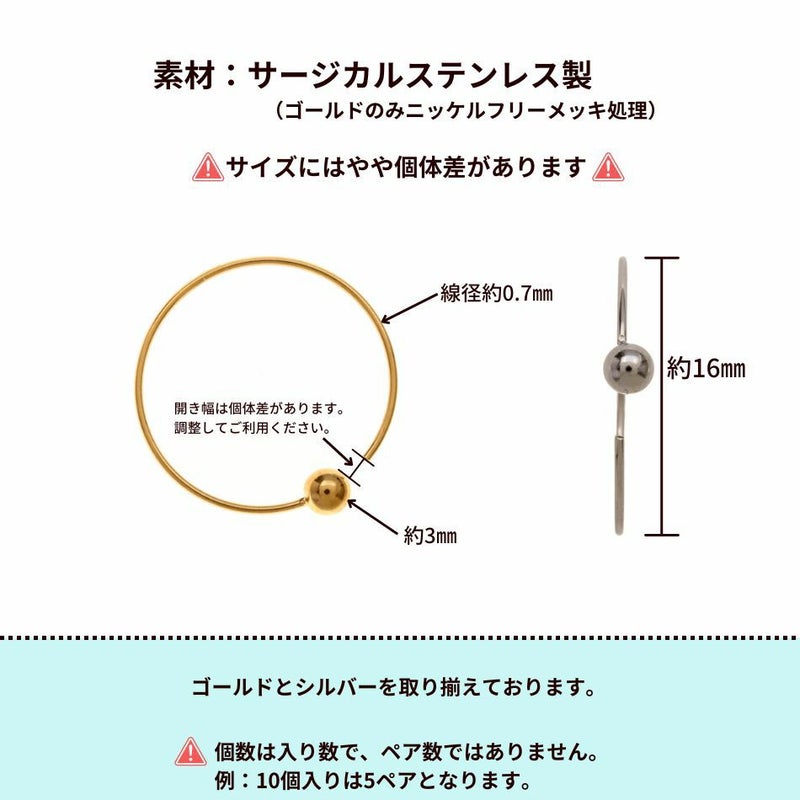 [ 玉付き ] フープピアス[ 銀 シルバー ] サージカルステンレス パーツ 金属アレルギー対応 P3-04