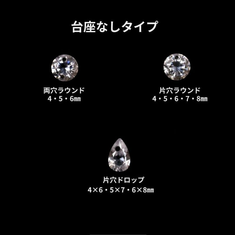 ジルコニアのサイズも各種取り揃えております。また、台座がないタイプや推し活におススメカラージルコニアもございます!!
