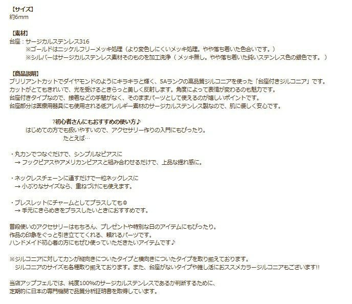 ブリリアントカットでダイヤモンドのようにキラキラと輝く、5Aランクの高品質ジルコニアを使った「台座付きジルコニア」です。