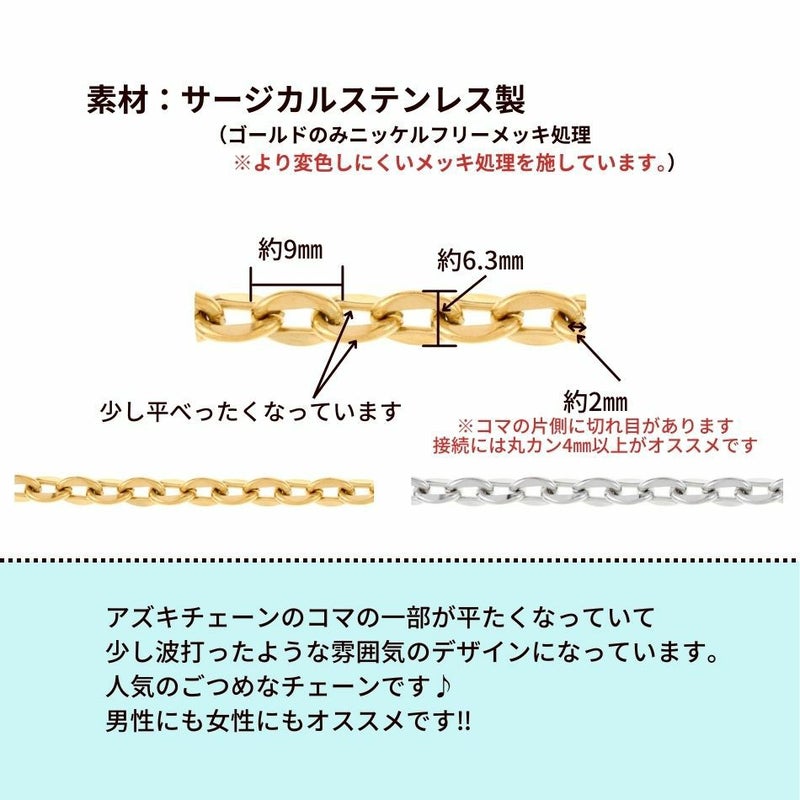 医療用器具にも使用される低アレルギー素材のサージカルステンレス製のアズキチェーンです。