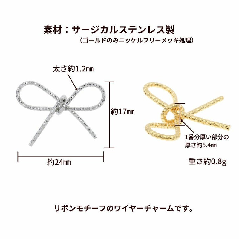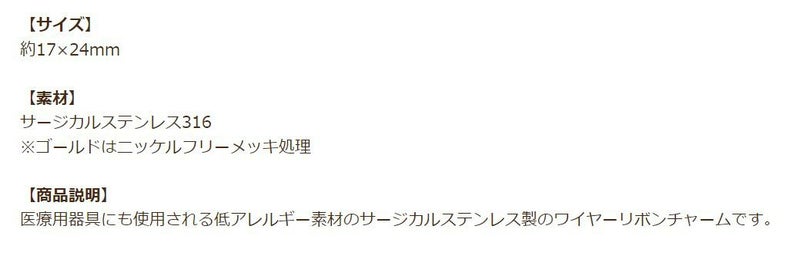 医療用器具にも使用される低アレルギー素材のサージカルステンレス製のワイヤーリボンチャームです。