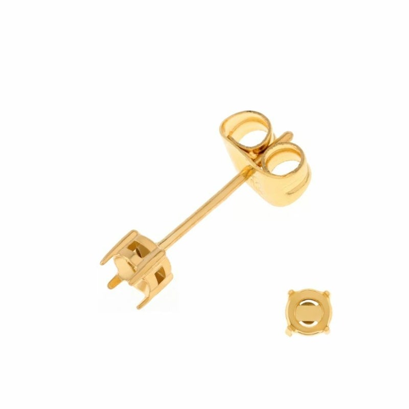 [10個] * 石枠 爪留め * ピアス 3mm [ ゴールド 金 ] キャッチ付き サージカルステンレス 四つ爪 石留め 台座 パーツ 石枠 爪留め 石留め 金属アレルギー対応 P1-06