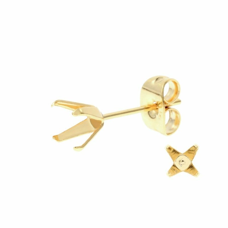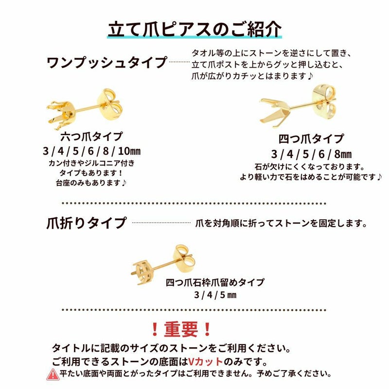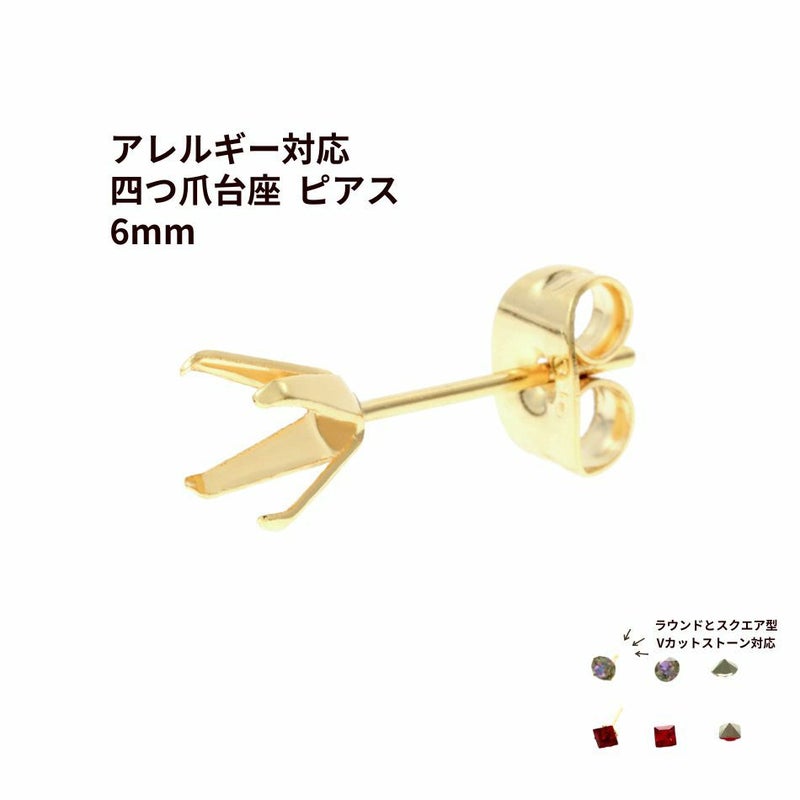 [10個] 四つ爪 台座 ピアス 6mm [ ゴールド 金 ] キャッチ付き サージカルステンレス パーツ 石枠 爪留め 石留め 金属アレルギー対応 P1-06
