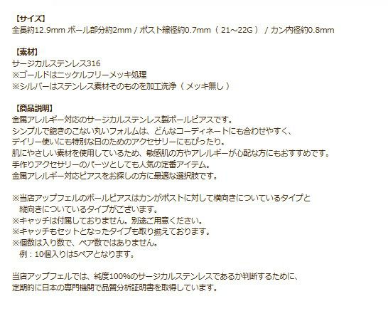 アップフェルは金属アレルギーの方でも安心してお使いいただけるサージカルステンレス素材のアクセサリーパーツをメインに扱っている専門ショップです。