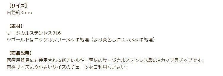 Vカップはボールチェーンを留め金具などにつなぐための金具です。ボールチェーンの大きさに合わせて様々なサイズがあります。