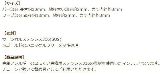 マンテルもネックレスやブレスレットの留め金具の一種です。輪の中に棒を入れて留めて使用します。多種多様なデザインがあり、ペンダントトップのように前側にセットしてアクセントとしてもお使いいただけます。