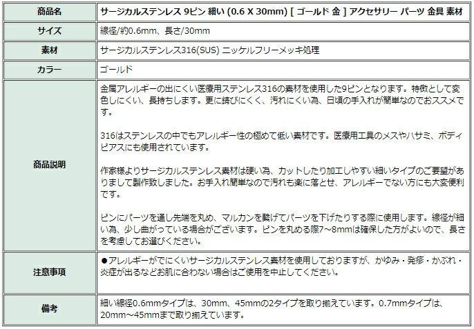 ステンレス製9ピン・ダブル9ピンはイヤリングやチャーム作りに
